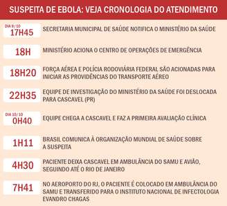 Chioro relatou que reforçará o controle que já está sendo feito nos portos e aeroportos, pelo menos por seis meses, período previsto pelo Organização Mundial de Saúde (OMS) para que o vírus seja controlado no mundo. Ele disse ainda que a maior arma no combate à doença é informar a população sobre os riscos e boatos em relação ao ebola. O ministro frisou, porém, que o risco de contaminação de um brasileiro por ebola é pequeno.