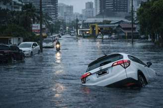 Um carro caiu em uma vala na manhã desta sexta-feira (20) durante os alagamentos provocados por chuva forte em Capão da Canoa, no Litoral Norte do Rio Grande do Sul. A força da água abriu o desnível em meio às vias inundadas, surpreendendo motoristas e chamando a atenção de moradores da região.