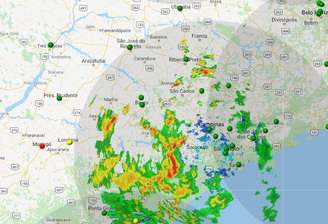 Na imagem do radar meteorológico, é possível ver o espalhamento de muitas nuvens carregadas nos tons em amarelo e principalmente em vermelho, que indicam a intensidade da chuva, quanto mais puxado para o vermelho escuro, maior a intensidade da chuva. Nesta mesma imagem, há uma linha de instabilidade avanção do Vale do Ribeira para a região de Sorocaba.