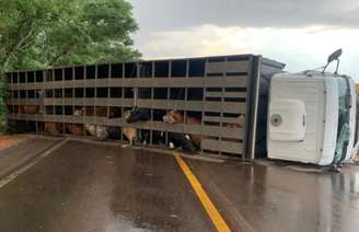 No caminhão, estavam cerca de 30 bovinos. Os animais permaneceram dentro do veículo tombado à espera de outro transporte, enquanto parte da carga morreu em decorrência da batida.