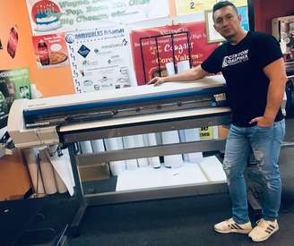 Mirkovic, que já tinha duas impressoras da empresa, VersaCAMM SP-540V e SOLJET PRO III XJ-7, estava pesquisando sua próxima compra no site da Roland quando soube do concurso e decidiu participar. A demonstração de VersaUV LEJ-640 da revendedora Toryon Technologies o inspirou a escrever a frase vencedora. "Eu descobri que a LEJ-640 me abrirá as portas para novas oportunidades e descobertas. Com a impressora poderei imprimir diretamente em substratos, eliminando mão de obra adicional, custo de vinil e fita de aplicação. Dessa maneira, farei mais economia e, consequentemente, terei maior lucratividade. A Roland sempre encontra uma maneira de descobrir novas soluções para o meu negócio de sinalização".