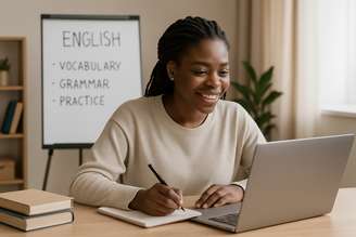 Estabeleça um prazo realista e quais habilidades priorizar (fala, escuta, leitura, escrita). Metas claras orientam a carga horária e a escolha do material.