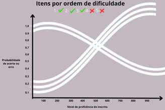 A partir destes três critérios é calculado o nível de proficiência do candidato. Por exemplo, suponha que um teste com 5 questões é aplicado e será corrigido pelo mesmo método do Enem.