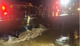 "Um dos (veículos) saiu da pista e foi arrastado para baixo da ponte. No momento do incidente, todos os ocupantes foram resgatados, com exceção de dois. É com grande tristeza que informamos que dois indivíduos, uma mulher adulta e um menino de 12 anos de idade, foram encontrados mortos mais tarde", disseram.