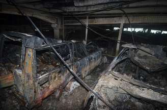 As imagens mostraram restos de veículos e o prédio revestido por uma poeira grossa e cinza, embora ninguém tenha sido ferido. O fogo chegou a derreter o piso de concreto da estrutura em parte do bloco de sete andares, tornando-o instável, disseram os bombeiros.