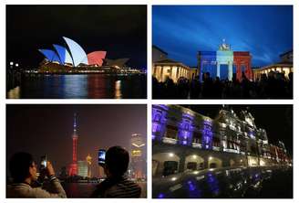 Monumentos em vários países foram iluminados com as cores da bandeira francesa na madrugada da sexta-feira (13) para o sábado (14), após os atentados terroristas que aconteceram em Paris, num gesto de solidariedade às vítimas.