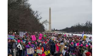 Mais manifestantes se reuniram em outros dois parques também próximos à Casa Branca, com um grupo focado em democracia e imigração e outro em questões locais de Washington, antes de se dirigirem ao encontro final da marcha, no Lincoln Memorial.