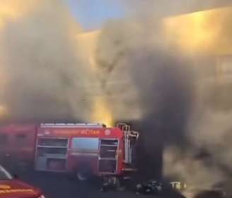 Um vídeo que circula nas redes sociais (veja abaixo) mostra o momento em que o portão do supermercado explode e atinge bombeiros que atuavam no combate ao fogo.