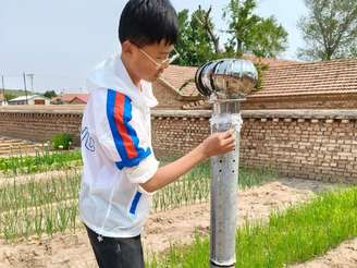 Usando tubos de aço e garrafas plásticas reutilizadas, o jdoelscente criou um dispositivo que aproveita o gradiente térmico entre o solo e o ar para produzir pequenas quantidades de água, suficientes para aumentar a sobrevivência de árvores recém-plantadas em áreas secas e ameaçadas pela desertificação. A invenção surgiu no contexto do programa Grande Muralha Verde do Norte da China, o maior projeto de reflorestamento do mundo.