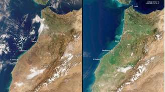 Primeiro marcada pela seca, depois visivelmente mais verde. Segundo os cientistas envolvidos, dois meses de chuvas intensas transformaram terras antes áridas em uma área com vegetação relativamente densa.