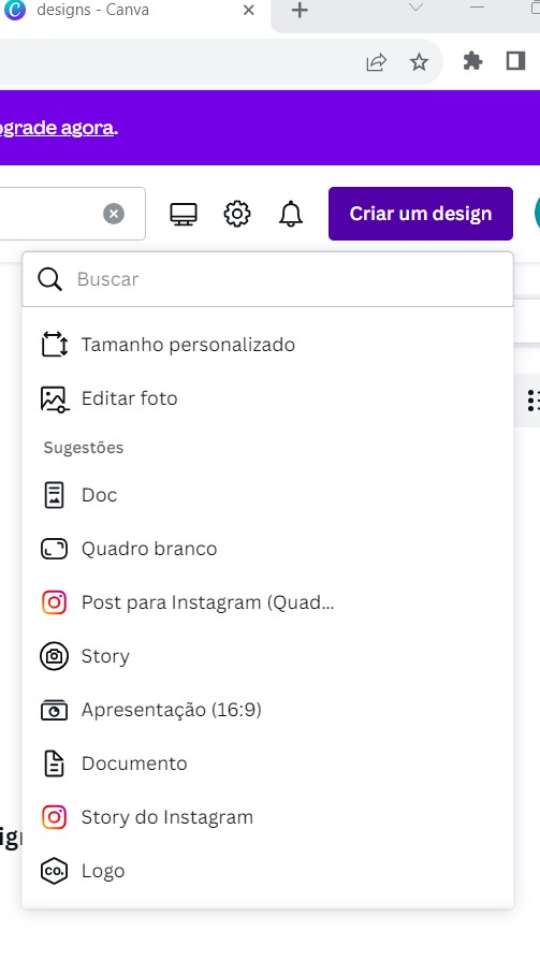O recurso "marcar imagens com uma identificação própria" é gratuito e pode ajudar muitos empreendedores. Para isso, basta ir em "Criar um design", no canto superior direito da página inicial, e escolher a opção "Logotipo".