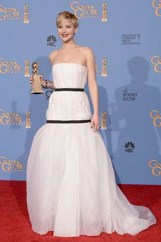 O ano nem tinha começado e Jennifer Lawrence ganhou o Globo de Ouro, em 12 de janeiro, com esse vestido Dior. O problema da peça são as faixas horizontais, que cortam e achatam a silhueta. Nas redes sociais, foi comparada a embutidos, Pocahontas entre outras coisas.