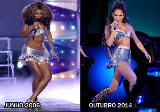 Beyoncé usou o body em um show no dia 31 de agosto de 2013. Jennifer Lopez apostou em top e hot pant em apresentação de 30 de maio do ano passado.