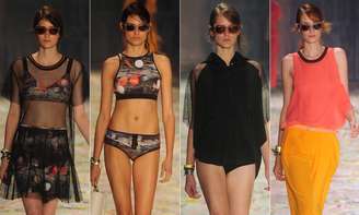 Nada é justo e apertado para as meninas da Second Floor, nem mesmo o jeans, que aparece na lavagem clara em cortes retos e, na versão pantalona, bem larga e comprida. As bolsas levadas na mãos com uma alça lateral enfatizam a ideia de diversão e vêm coloridas. Top e calcinha de biquíni também surgem estampados, com tecido telado por cima. Nos pés, sandálias de sola tratorada de borracha que parece pneu de trator, outra tendência forte para o verão.