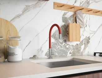 Outra tendência de metais e louças para cozinha que traz inúmeros benefícios para o espaço - especialmente no quesito funcionalidade - é a torneira com bica móvel.