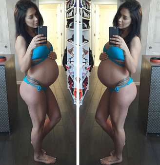 Grávida de oito meses, Bella Falconi fez um desabafo no Instagram neste sábado (25) sobre as transformações em seu corpo por conta da gestação. "Estou tão orgulhosa de ter celulite, flacidez e saquinho de água embaixo da bunda, isso mostra que sou normal e acima de tudo que sou mulher e que não deixo de me amar ou de me sentir bonita mesmo com os efeitos colaterais da gravidez", escreveu ela, que postou uma foto onde aparece de biquíni azul com o barrigão de fora.