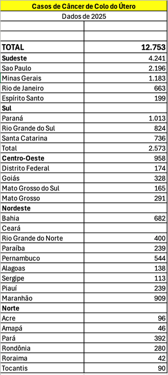 O HPV é o responsável por 99,7% dos casos de câncer do colo do útero. Segundo o Instituto Nacional de Câncer (INCA), esse é o terceiro tumor mais frequente entre mulheres no Brasil, atrás apenas do câncer de mama e do colorretal. Para este ano, a estimativa é de 19.310 novos casos no país.
