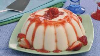 Manjar branco com calda de morango