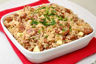 Já o nome "baião de dois" vem de uma dança típica na qual os casais dançam juntinhos, da mesma forma que o arroz e o feijão juntinhos formam uma dupla perfeita! Veja a seguir a receita: