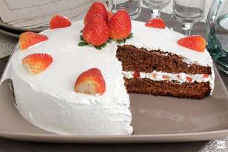 É o caso desse bolo de chocolate com morango sem lactose! Com massa fofa e recheio cremoso, fica bem saboroso e, ainda por cima, lindo. Veja como preparar: