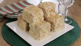 - Misture os ingredientes da calda, passe os pedaços de bolo e polvilhe com nozes.