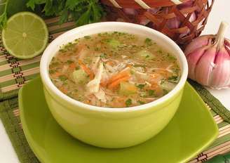 - Acrescente o caldo de legumes, o arroz e cozinhe por 15 minutos ou até amaciar. Transfira para uma sopeira e sirva acompanhado de limão e azeite