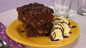 - Sirva seu falso brownie com castanha acompanhado de sorvete de creme ou baunilha e cobertura de chocolate.
