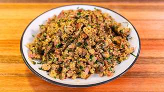 A receita do chef Enzo Neto aposta em ingredientes acessíveis e preparo prático. O segredo está em cuidar de cada etapa para o feijão tropeiro ficar equilibrado e muito gostoso.