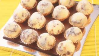 - Faça bolinhas, passe no açúcar, coloque em forminhas de papel e saboreie o seu delicioso beijinho com uva-passa.