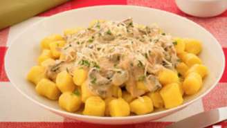 Com a massa de batata e farinha, o nhoque tem uma textura especial que vai ficar guardada na sua memória. Além disso, o molho com frango e cogumelos combina perfeitamente com o prato! Separe os ingredientes e faça essa delícia em pouco mais de uma hora!