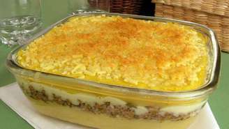 - Em um refratário, coloque metade da polenta e cubra com a carne moída.