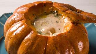Para esta receita, prefira a moranga de casca bem alaranjada e firme. O tamanho deve ser proporcional à quantidade de recheio desejada. Verifique se a base está estável para não tombar no forno.