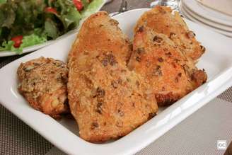 - Passe as sobrecoxas pela maionese, envolvendo toda a carne