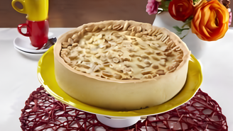 Forre o fundo e as laterais de uma forma de aro removível de 22 cm de diâmetro, previamente untada.