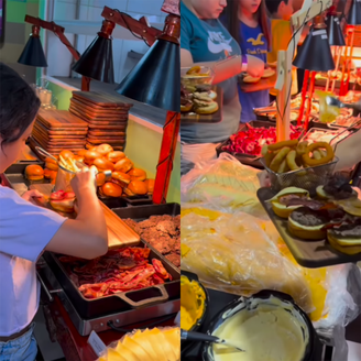 No self-service, os clientes podem desfrutar de hambúrgueres feitos com carne, frango e toscana com carne seca. A ilha gastronômica ainda apresenta uma variedade de acompanhamentos, permitindo mais de mil combinações distintas, conforme ressaltou o fundador. O restaurante planeja introduzir opções veganas em breve.
