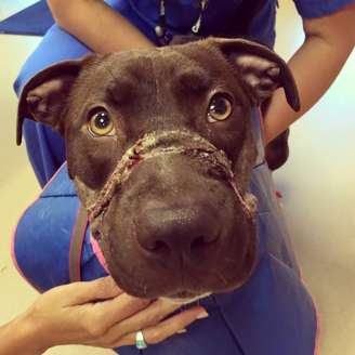 No último mês, as fotos de Caitlyn chocaram as redes sociais. A cadela de um ano teve o focinho deformado após o antigo dono amarrá-lo bem forte com uma fita adesiva por mais de 36 horas, o que fez com que ela ficasse em estado grave e precisasse passar por uma cirurgia de reconstrução na Sociedade Animal de Charleston, na Carolina do Sul, Estados Unidos.