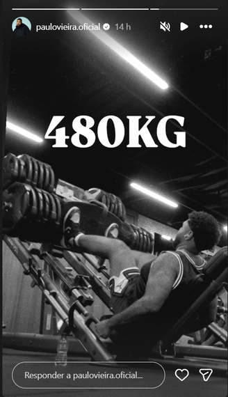 Na legenda da publicação, Paulo manteve o bom humor, mas não escondeu o esforço. "Último peso de treino de progressão.