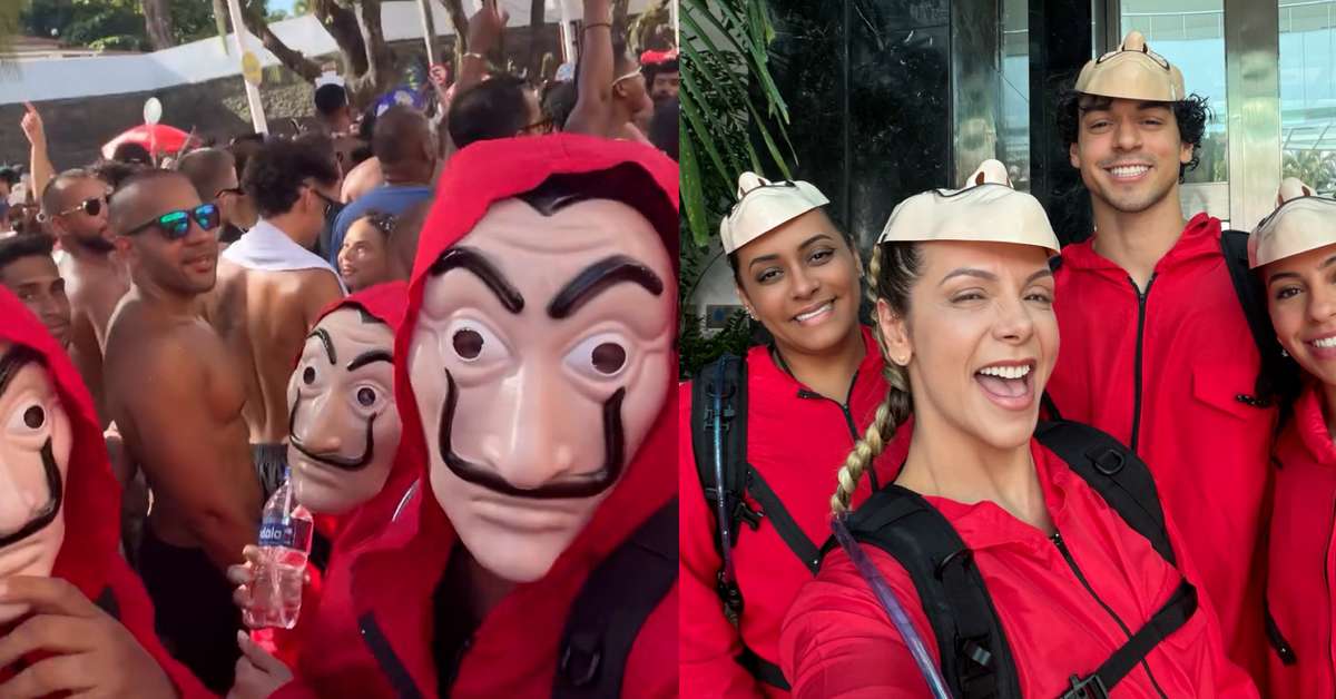 Carla Perez e família se disfarçam de ‘La Casa de Papel’ para curtir pipoca da Ivete em Salvador. A dançarina usou seu perfil nas redes sociais na terça-feira, 17, para mostrar como driblou os fãs para aproveitar a folia. Ela apareceu nos stories, junto dos familiares e da esposa do cantor Péricles, Lidiane Faria, vestida com macacões vermelhos e máscaras características da série. Neste ano, Carla Perez se despediu do carnaval de Salvador e puxou o trio Pipoca Doce pela última vez com uma homenagem à apresentadora Xuxa. A cobertura de Carnaval do Terra tem apoio de Bluefit, Gol, Magalu, Mercado Pago, OMO e Popeye's. #TerraNoCarnaval Reprodução/carlaperez/Instagram