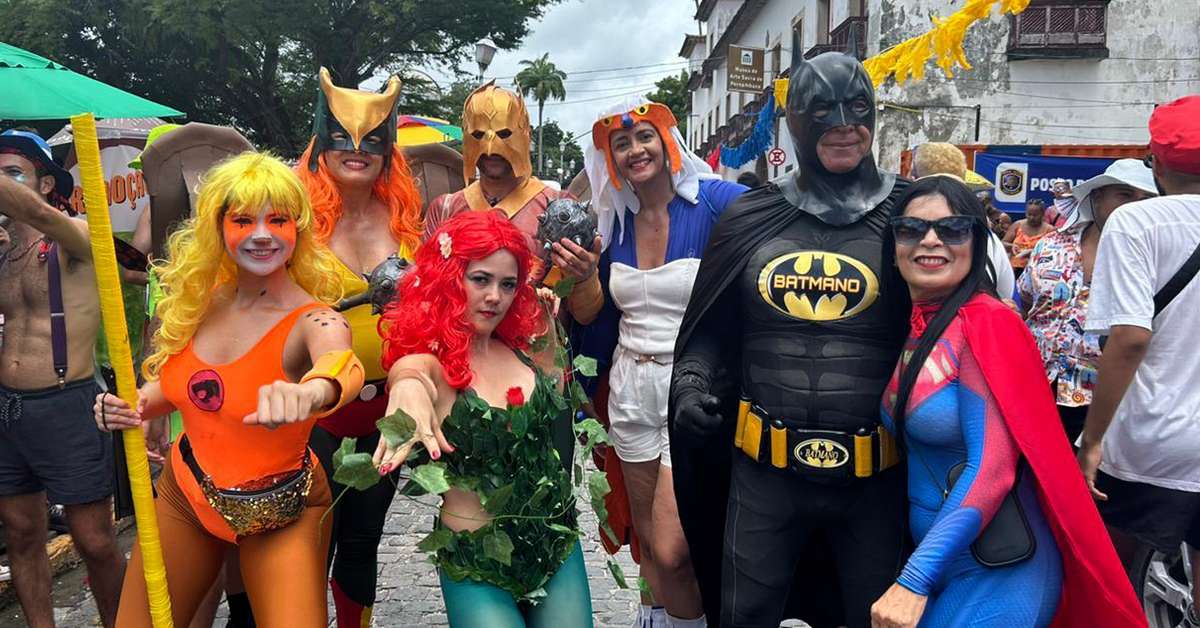 De Capitão América a Coringa: conheça o bloco do carnaval de Olinda que celebra a cultura pop. A reportagem do Terra foi conferir de perto neste domingo, 15, o desfile, que surgiu em 1995 e é chamado de ‘Sala da Justiça’. Além dos heróis, os foliões se inspiram em outros personagens e figuras da cultura pop, que hoje desfila com milhares de pessoas em Olinda. A cobertura de Carnaval do Terra tem apoio de Bluefit, Gol, Magalu, Mercado Pago, OMO e Popeye's. #TerraNoCarnaval Emília Prado/Redação Terra