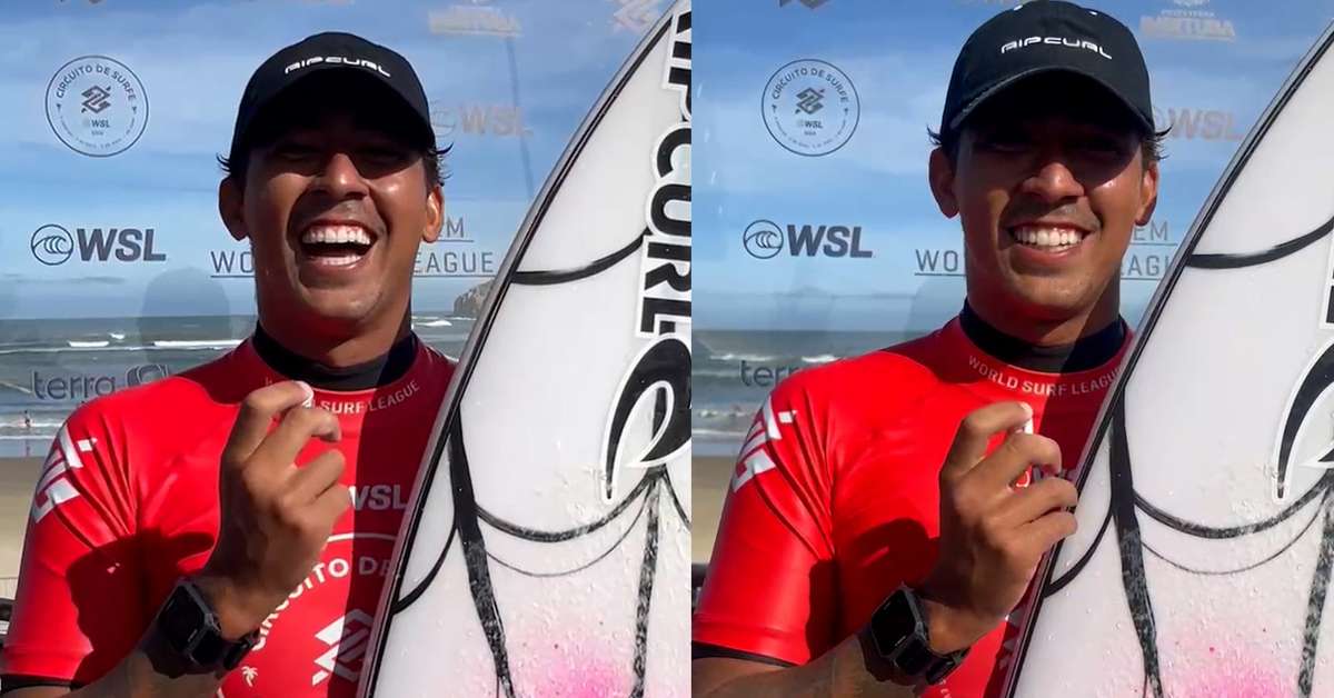 Samuel Pupo revela expectativa para enfrentar o irmão na etapa da WSL de SC: ‘Nem sempre acontece’. O surfista, que venceu a última bateria do dia em Imbituba, comentou o seu desempenho nesta quinta-feira, 18, na competição. O atleta também citou a possibilidade de competir contra o irmão, Miguel Pupo, além de Mateus Herdy e João Chianca, o Chumbinho. Imagens: Gabriel Gatto/Redação Terra