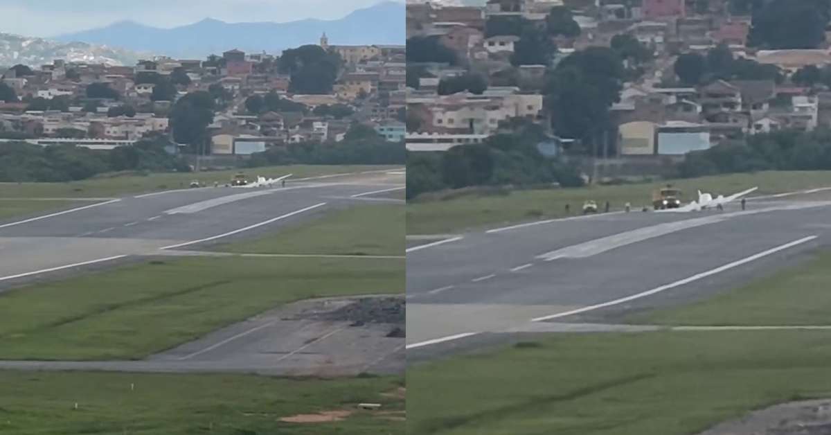 O caso aconteceu na tarde desta sexta-feira, 19, em Belo Horizonte (MG), e não deixou feridos. A aeronave modelo King Air C90A, de matrícula PR-SJL, realizava um voo de manutenção, quando comunicou à torre de controle uma avaria no trem de pouso. Ao Terra, o aeroporto afirmou que haviam sete pessoas a bordo do avião e que ele foi removido; a pista já foi liberada. Reprodução/Wagner De Oliveira/Facebook