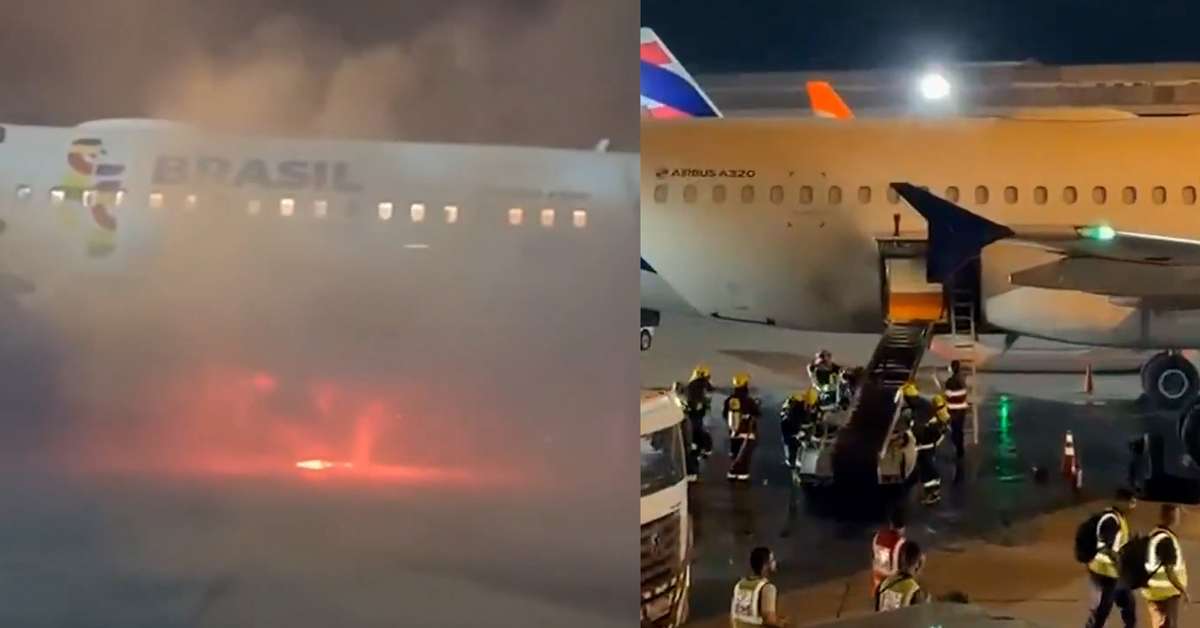 O incidente acontece na noite desta quinta-feira, 4, no Terminal 2 do Aeroporto Internacional de Guarulhos. No vídeo, feito por passageiros, é possível ver o momento da evacuação. De acordo com o portal Aeroin, o incêndio começou em um veículo de esteira de bagagem. Todos saíram em segurança da aeronave e ninguém se feriu, informou o site especializado em aviação. Reprodução/aero_in/X