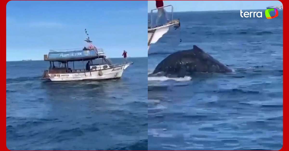 As imagens foram registradas no último domingo, 7, nas proximidades das Praias dos Anjos na Região dos Lagos. No vídeo, é possível ver o animal surgindo na água e logo em seguida, uma embarcação avança sobre a baleia, causando gritos de desespero das pessoas ao redor. Segundo o Instituto Chico Mendes de Conservação da Biodiversidade (ICMBio), a embarcação não possui o credenciamento para navegar na região. Reprodução/Cabo Frio em Foco/Facebook