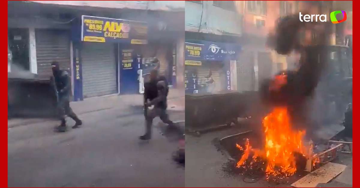 Barricadas com fogo foram montadas para dificultar a ação dos policiais.
