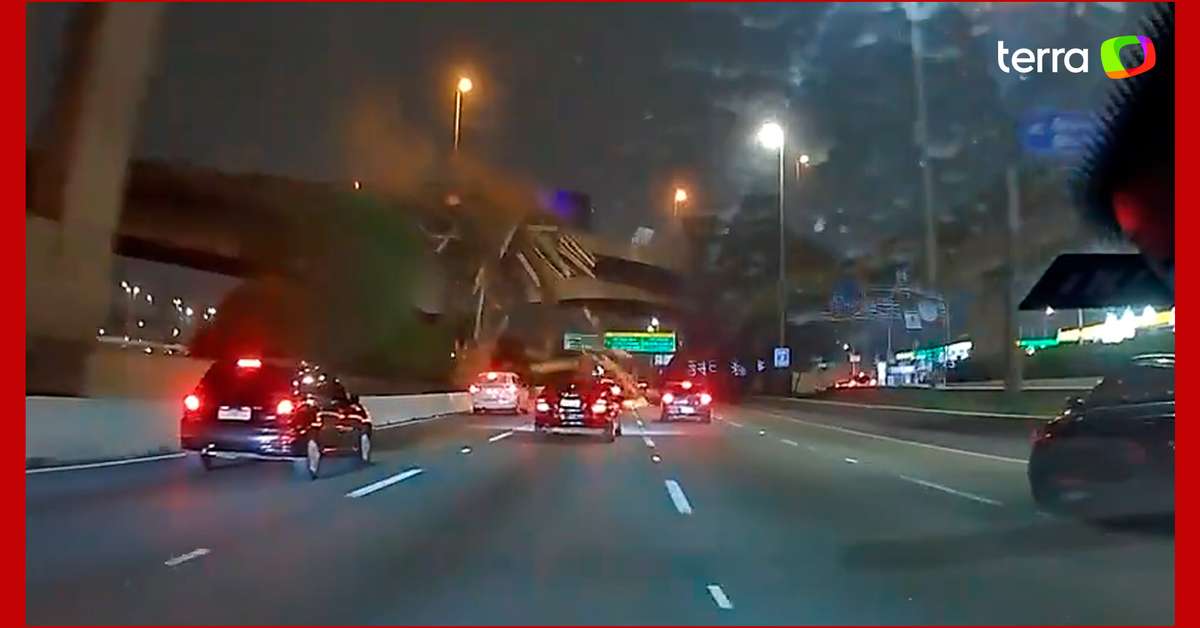 Caminhão capota em viaduto, carga com madeira cai e atinge carros em SP. O acidente ocorreu na noite deste domingo, 28, em um acesso à Marginal Tietê. Uma câmera instalada no carro de Vinícius Munhoz flagrou o momento do incidente. Nas imagens, a carga despenca sobre os veículos que passavam por baixo do viaduto. Ao menos dois carros são atingidos, enquanto outros que vinham atrás freiam bruscamente. "Por poucos segundos ou metros não fui eu", escreveu o jornalista ao publicar as imagens. De acordo com o Corpo de Bombeiros, uma pessoa teve ferimentos leves e foi socorrida.