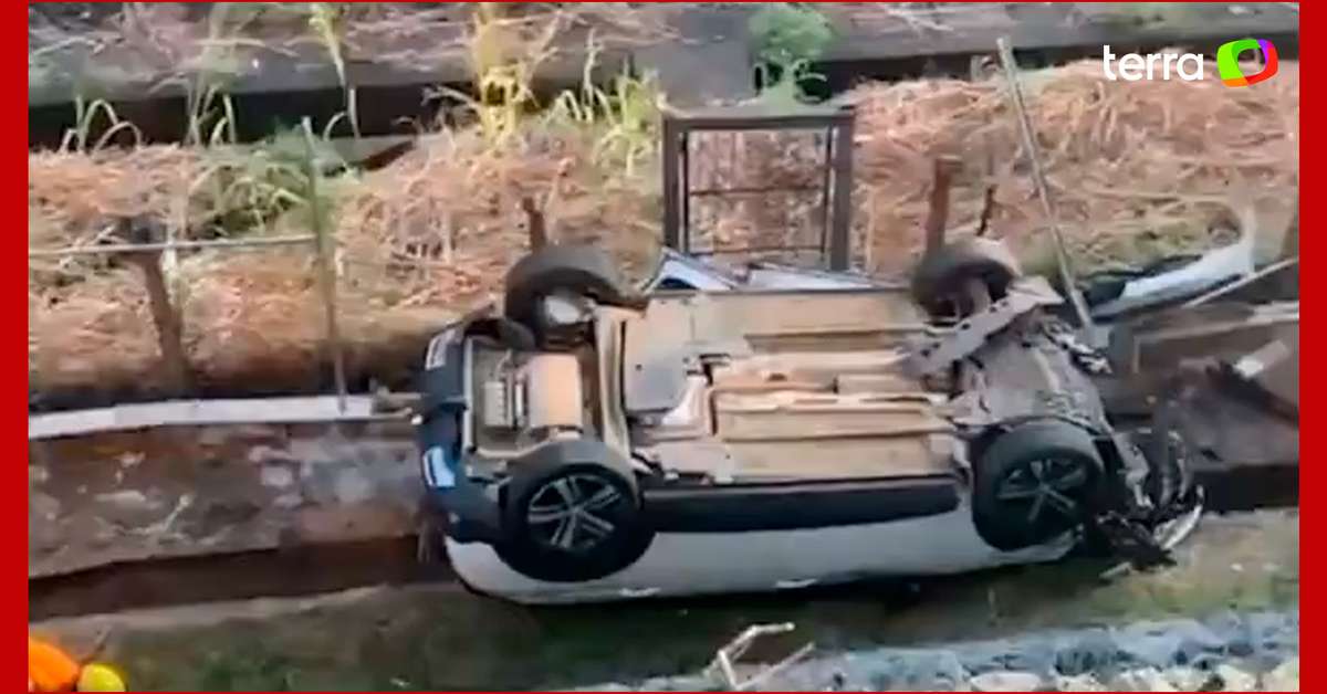 Carro cai próximo aos trilhos do metrô no Distrito Federal