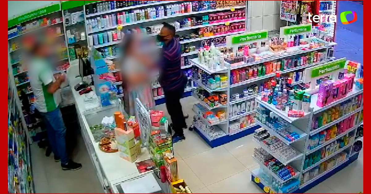 Homem enxuga lágrimas de mulher ao assaltar farmácia