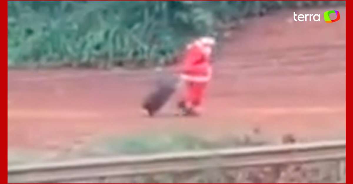 Sem trenó e carregando mala, Papai Noel é flagrado caminhando por estrada em Goiás. A chegada do bom velhinho à cidade de Anápolis, em Goiás, foi de uma forma modesta. No vídeo, o homem caracterizado caminha por uma estrada de terra, próxima a um córrego. A cena foi registrada por um morador, que ficou intrigado, na manhã da última terça-feira, 12.