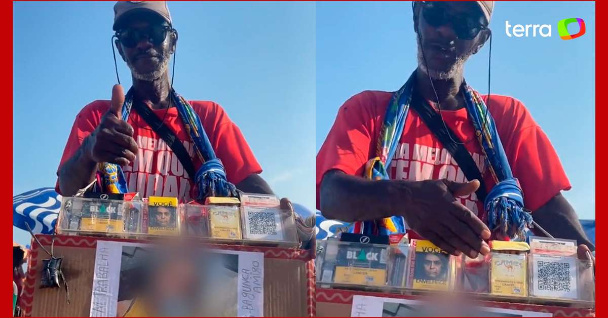 O registro foi feito em uma praia no Rio de Janeiro e compartilhado na segunda-feira, 13. No vídeo, o vendedor aparece com uma caixa de produtos com uma foto do 'caloteiro'. “A melhor forma de fazer uma pessoa pagar, é essa aqui”, diz o vendedor.
