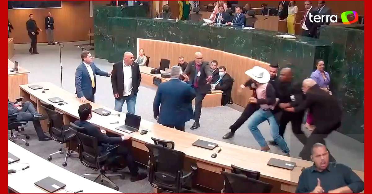 Deputado bolsonarista parte para cima de petista e precisa ser contido por seguranças em Goiás. A confusão entre os deputados estaduais Amauri Ribeiro (União Brasil) e Mauro Rubem (PT) ocorreu nesta terça-feira, 10. Os parlamentares da Assembleia Legislativa de Goiás discutiam a situação entre Palestina e Israel. A confusão descambou, porém, quando o petista citou um caso de agressão da filha do colega. Em meio a diversos xingamentos, o parlamentar precisou ser contido por seguranças da Casa e a sessão foi encerrada.